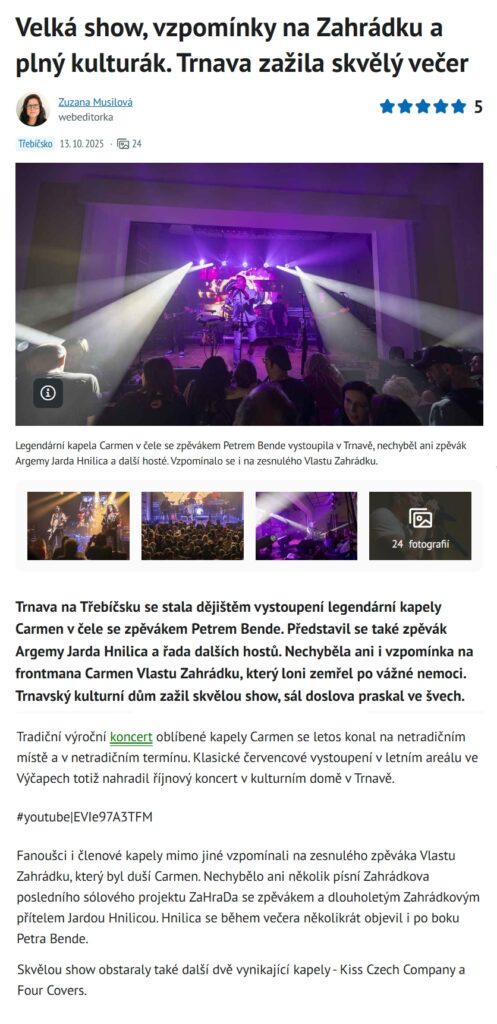 Fotky, videa a články z koncertů. Reálná atmosféra z pódia i z publika.